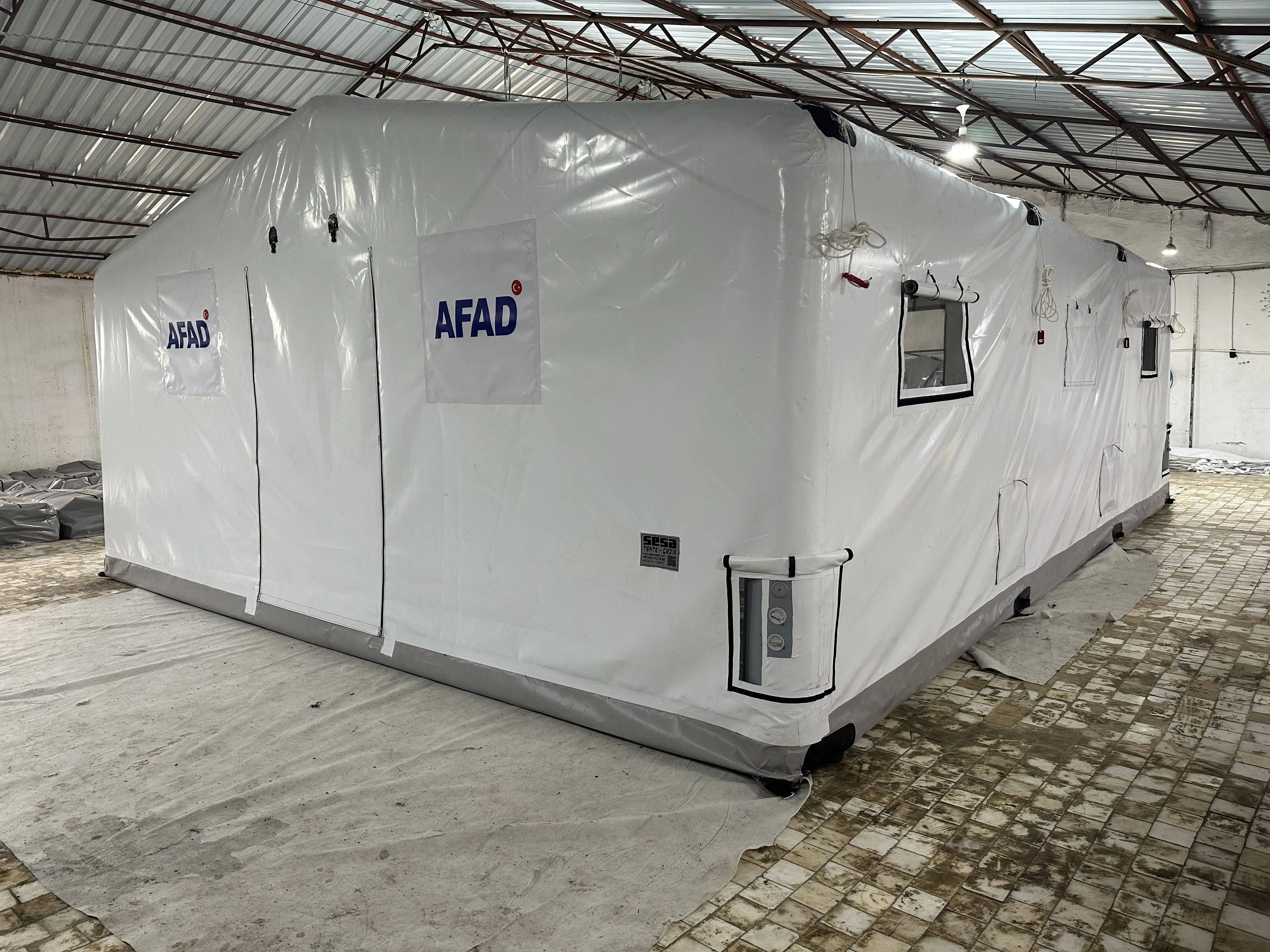 Yaralıların ilk müdahalesi, triyaj ve acil tedavi işlemleri bu çadırlarda yapılır.
